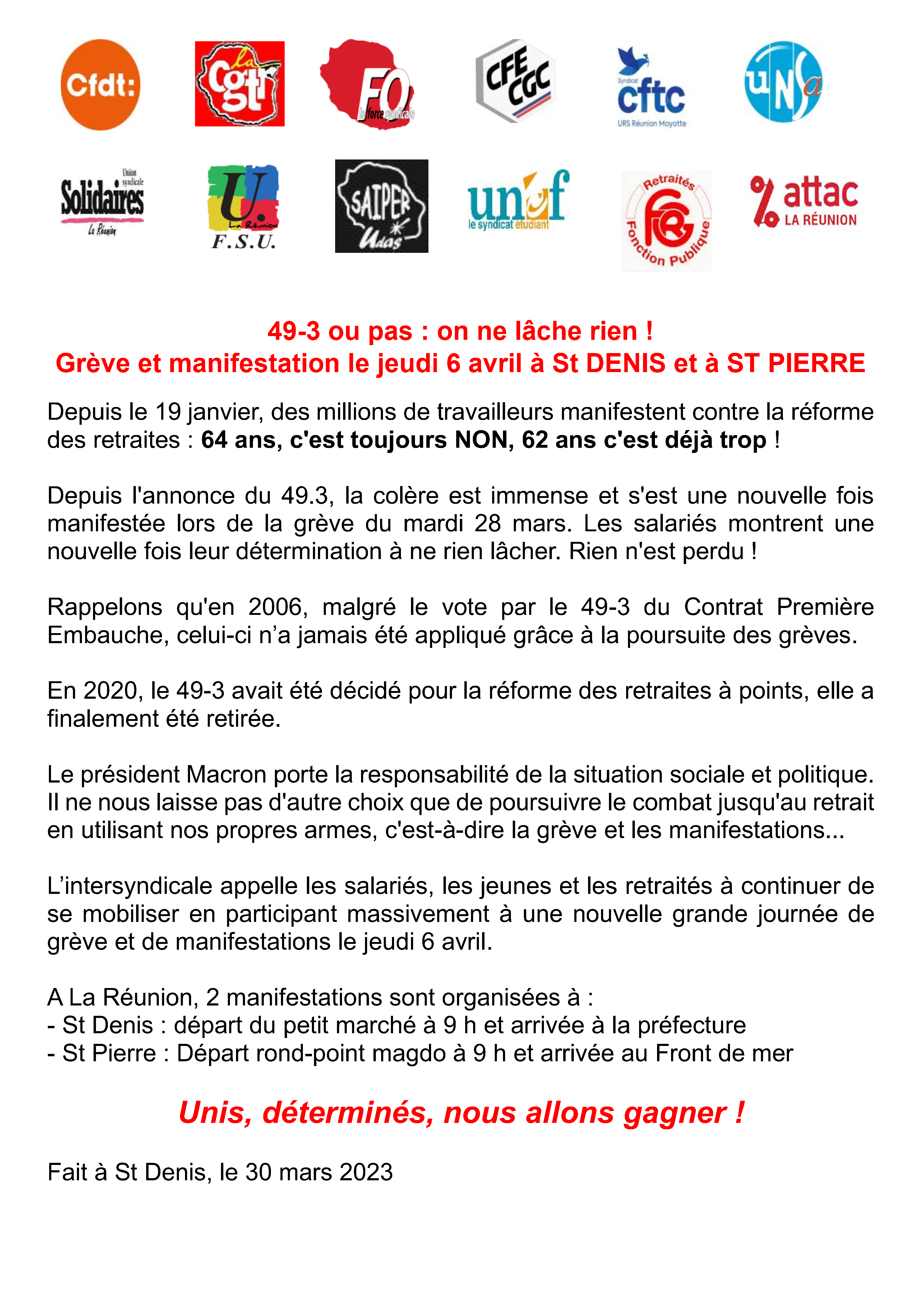 Le 6 avril, mobilisons nous !